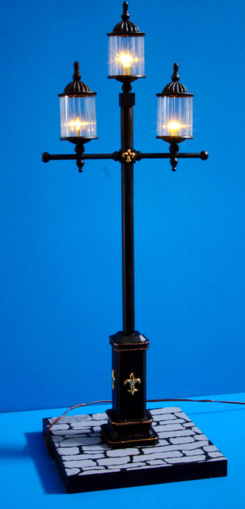 Straßenlaterne aus Messing mit 3 Glasschirmen