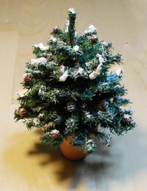 Christmas tree with cones and snow