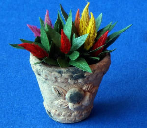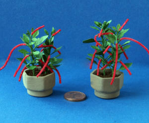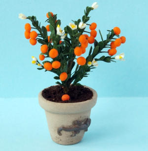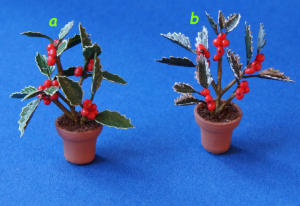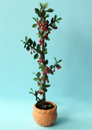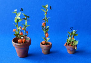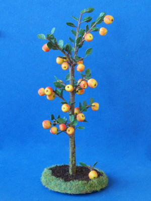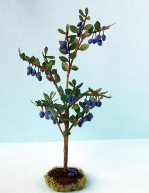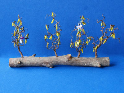 Alle Pflanzen und Zweige sind vorwiegend aus Naturmaterialien gefertigt.Die Früchte sind aus Fimo.