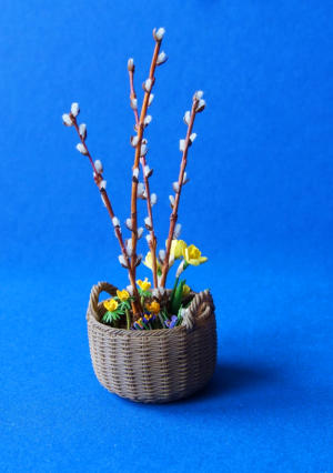 Frühlingskorb mit Weide, Winterlinge,
