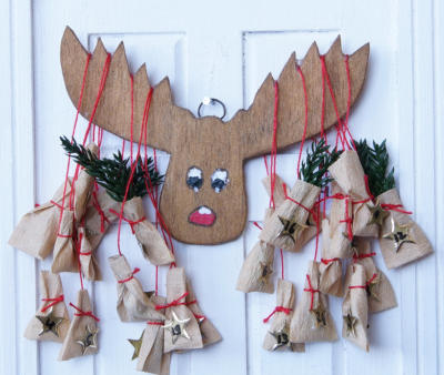 Advendskranz Kalender mit 24 gefüllten Tüten